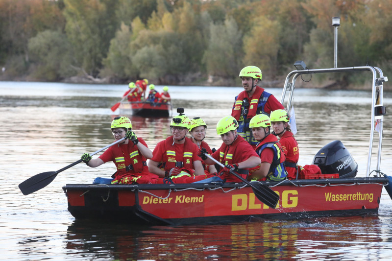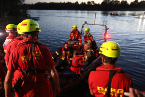 Troisdorf: Eine angenommene Hochwasserlage und eine hohe Anzahl an betroffenen Menschen war das Szenario, dass die DLRG Rhein-Sieg als auch das Deutsche Rote Kreuz (DRK), der Malteser-Hilfsdienst (MHD), das Technische Hilfswerk (THW) sowie die Feuerwehr am Freitagabend zu bewältigten hatten. Eine größere Personengruppe wurde vom "steigenden Hochwasser" eingeschlossen und mussten aus der sehr kritischen Situation gerettet werden. Es war jetzt die Aufgabe der Rettungskräfte, die über 100 Personen aus dieser "gefährlichen Lage" in Sicherheit zu bringen. Hierfür wurden die örtlichen Gegebenheiten am Rotter See in Troisdorf genutzt. Die besondere Aufgabe der DLRG war hierbei, die Personen mit Booten sicher an Land zu transportieren, wo sie zur weiteren Betreuung an das DRK übergeben wurden. Da die Menschen nicht in ihre Häuser und Wohnungen zurückkehren konnten, musste ein geeigneter Betreuungsplatz für eine so hohe Anzahl an Personen eingerichtet werden, an denen die Personen verpflegt werden konnten und auch die Möglichkeit zur Übernachtung hatten. Hierfür richtete das THW einen Betreuungsplatz in einem nahegelegenen Berufskolleg ein. Durch das DRK und den MHD wurde dort die weitere Betreuung für die Personen übernommen.