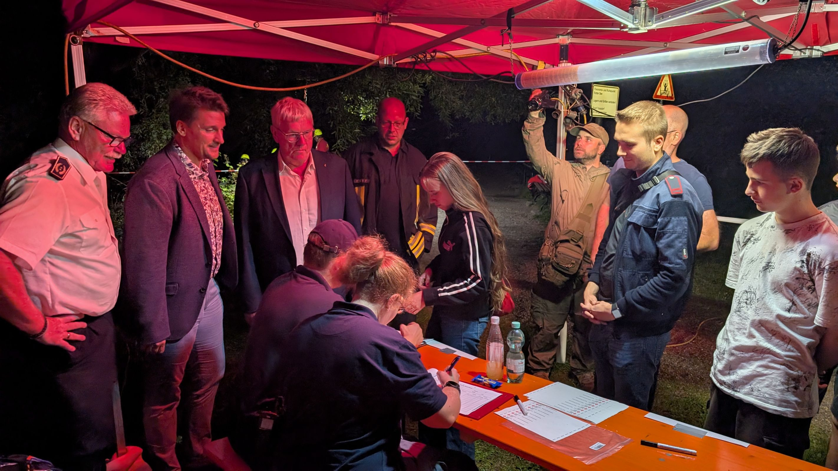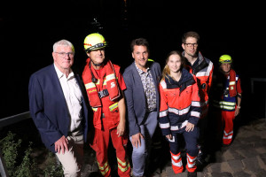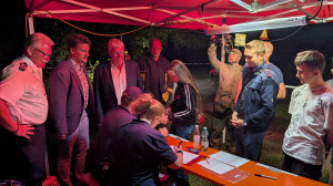 Beobachter der Großübung waren der Landrat des Rhein-Sieg-Kreises Sebastian Schuster, gemeinsam mit dem Kreisbrandmeister Stefan Gandelau und der Troisdorfer Bürgermeister Alexander Biber. Alle waren sehr interessiert und angetan von den einzelnen Übungen und der guten Zusammenarbeit der Hilfsorganisationen.